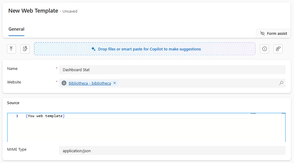 Quick setup: Power Pages Management → Web Templates → New Web Template. Name it, connect to your site, set MIME type to application/json